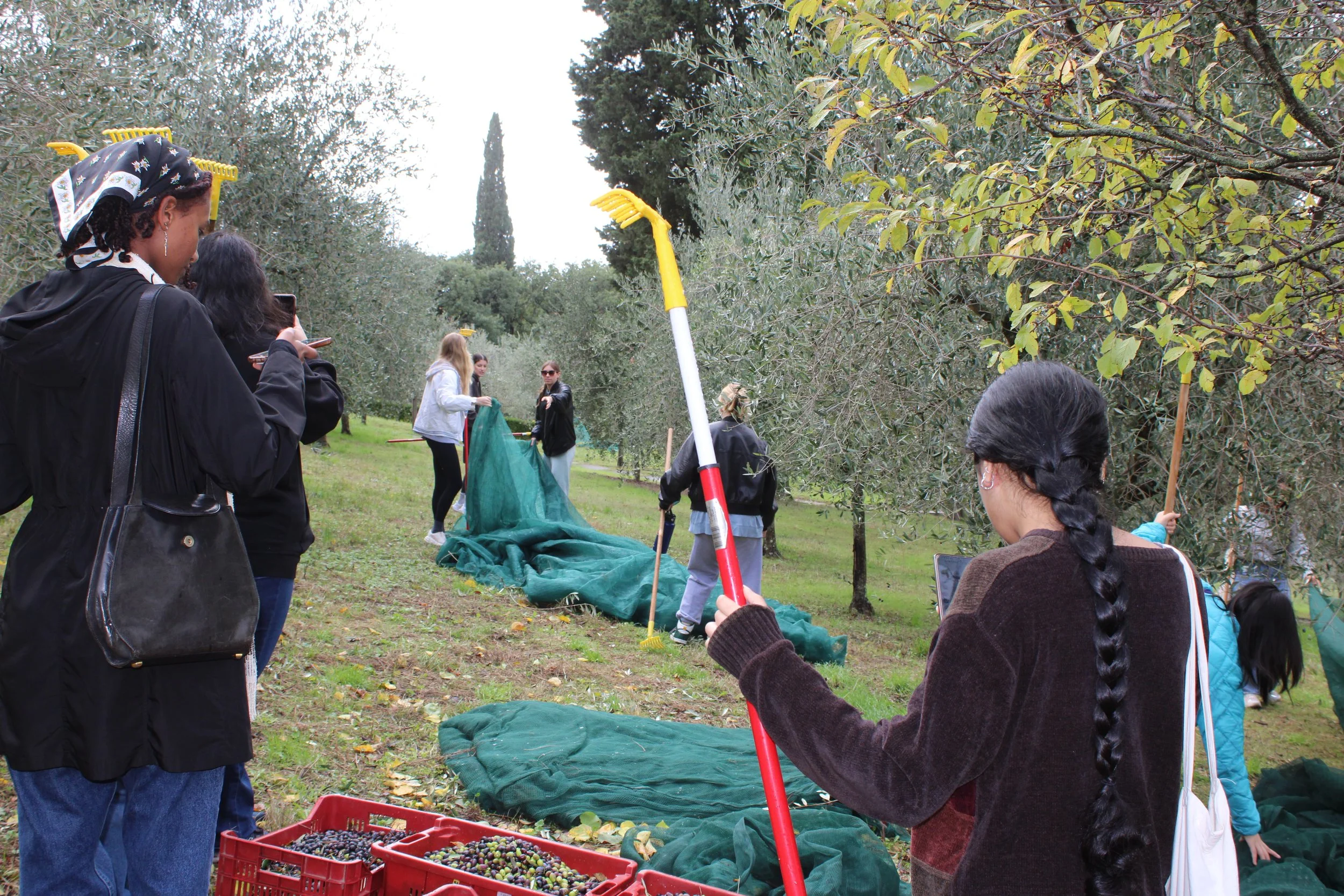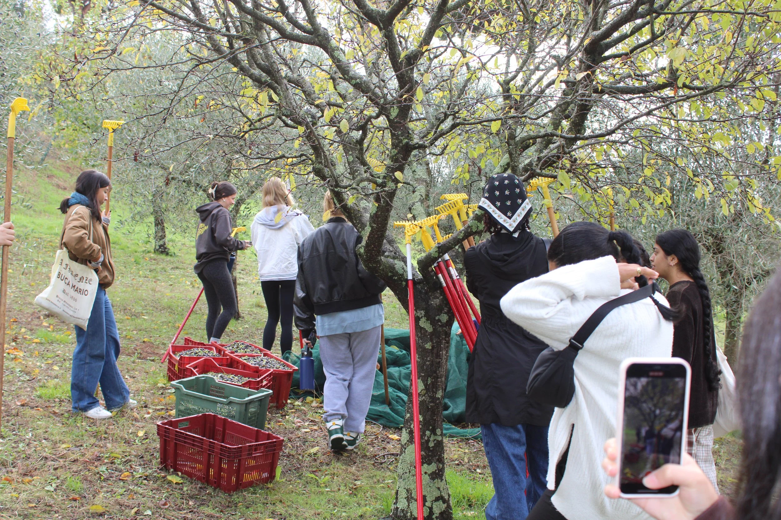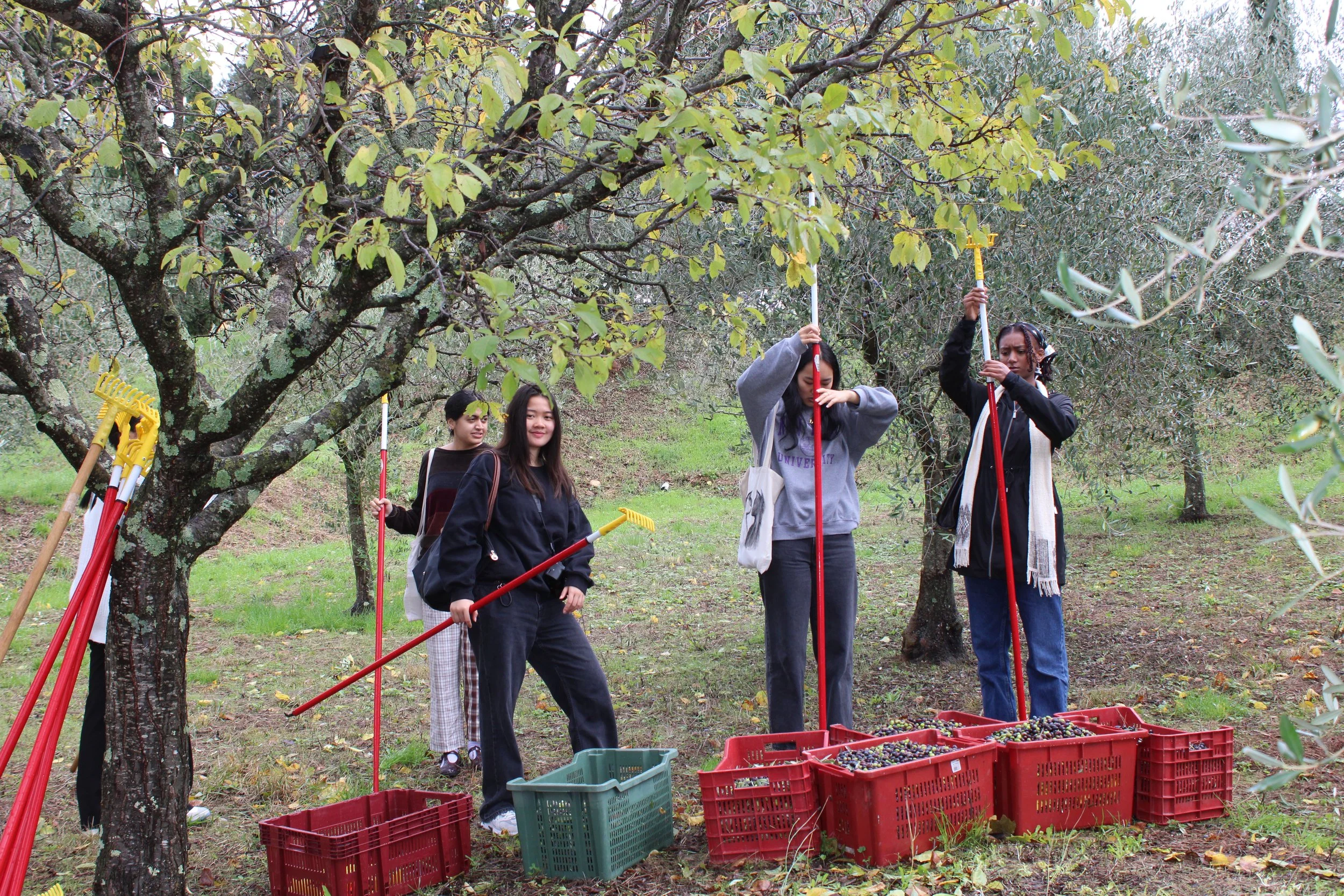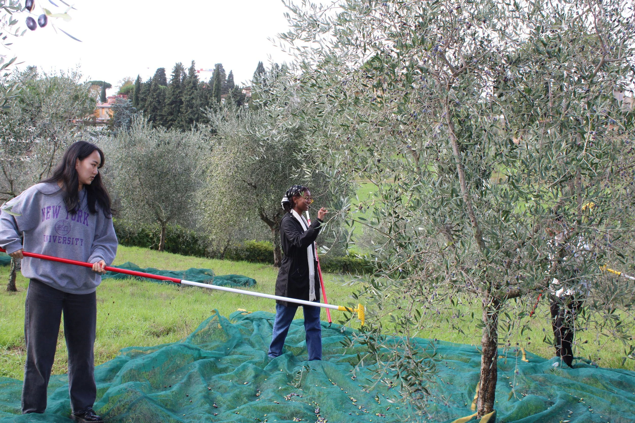 Each year, as part of a unique class experience, NYU Florence students actively participate in the harvesting of olives on campus grounds, turning theory into practice through hands-on engagement. Guided by faculty and local experts, students learn the intricacies of olive cultivation, harvesting techniques, and the traditional methods of pressing olives into oil. This immersive activity not only deepens their understanding of sustainable agriculture and food production but also connects them to the Tuscan landscape and its cultural heritage. The process culminates in the production of NYU’s very own olive oil, a product shaped by student collaboration, curiosity, and care.