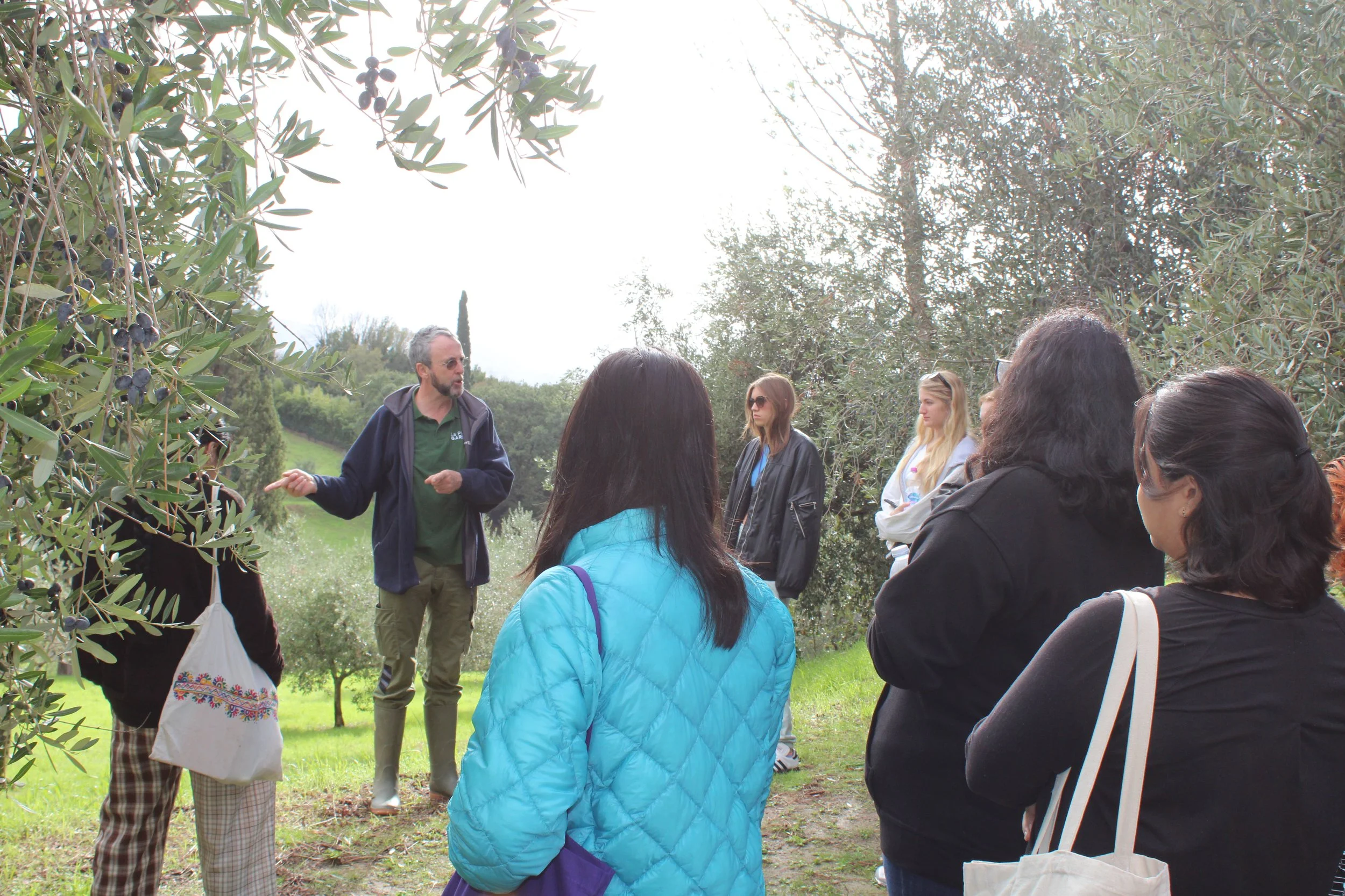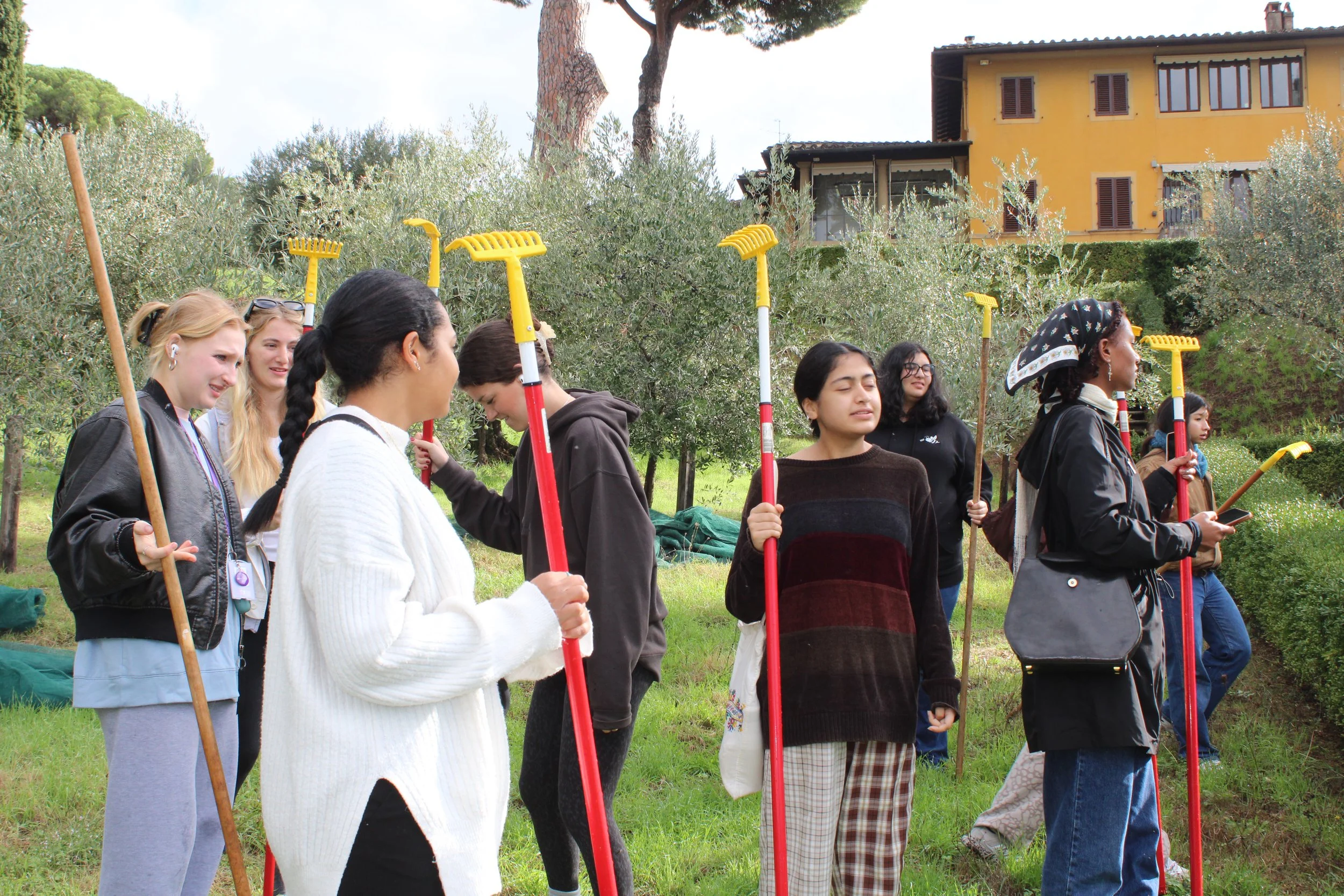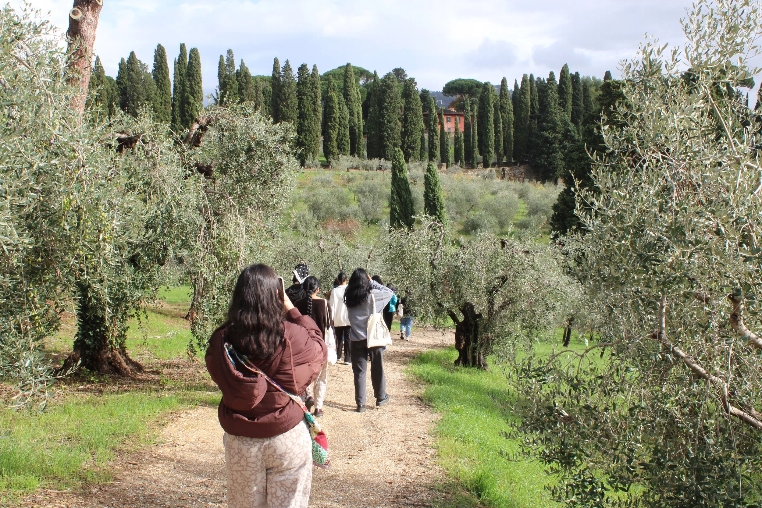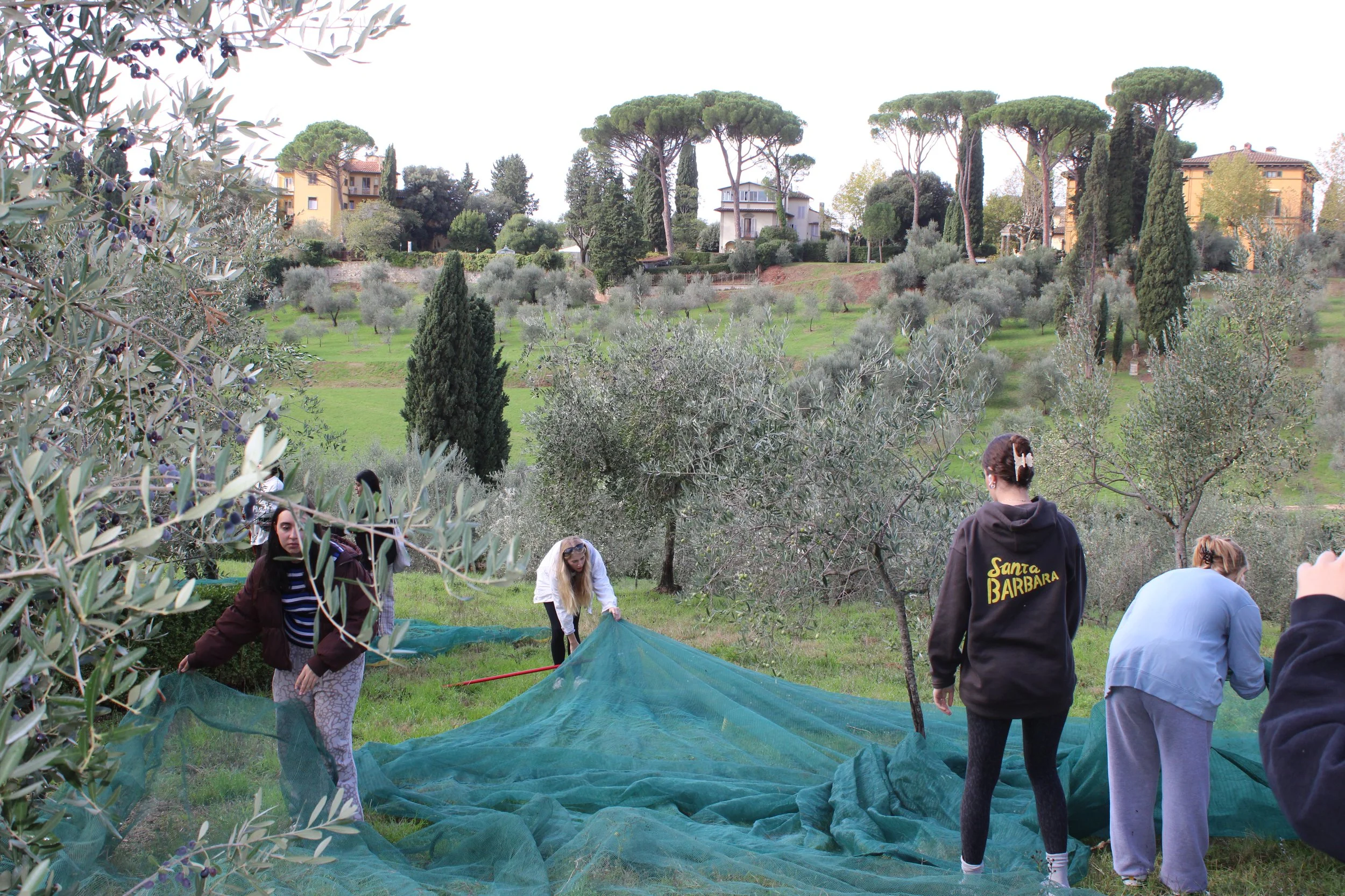 Each year, as part of a unique class experience, NYU Florence students actively participate in the harvesting of olives on campus grounds, turning theory into practice through hands-on engagement. Guided by faculty and local experts, students learn the intricacies of olive cultivation, harvesting techniques, and the traditional methods of pressing olives into oil. This immersive activity not only deepens their understanding of sustainable agriculture and food production but also connects them to the Tuscan landscape and its cultural heritage. The process culminates in the production of NYU’s very own olive oil, a product shaped by student collaboration, curiosity, and care.