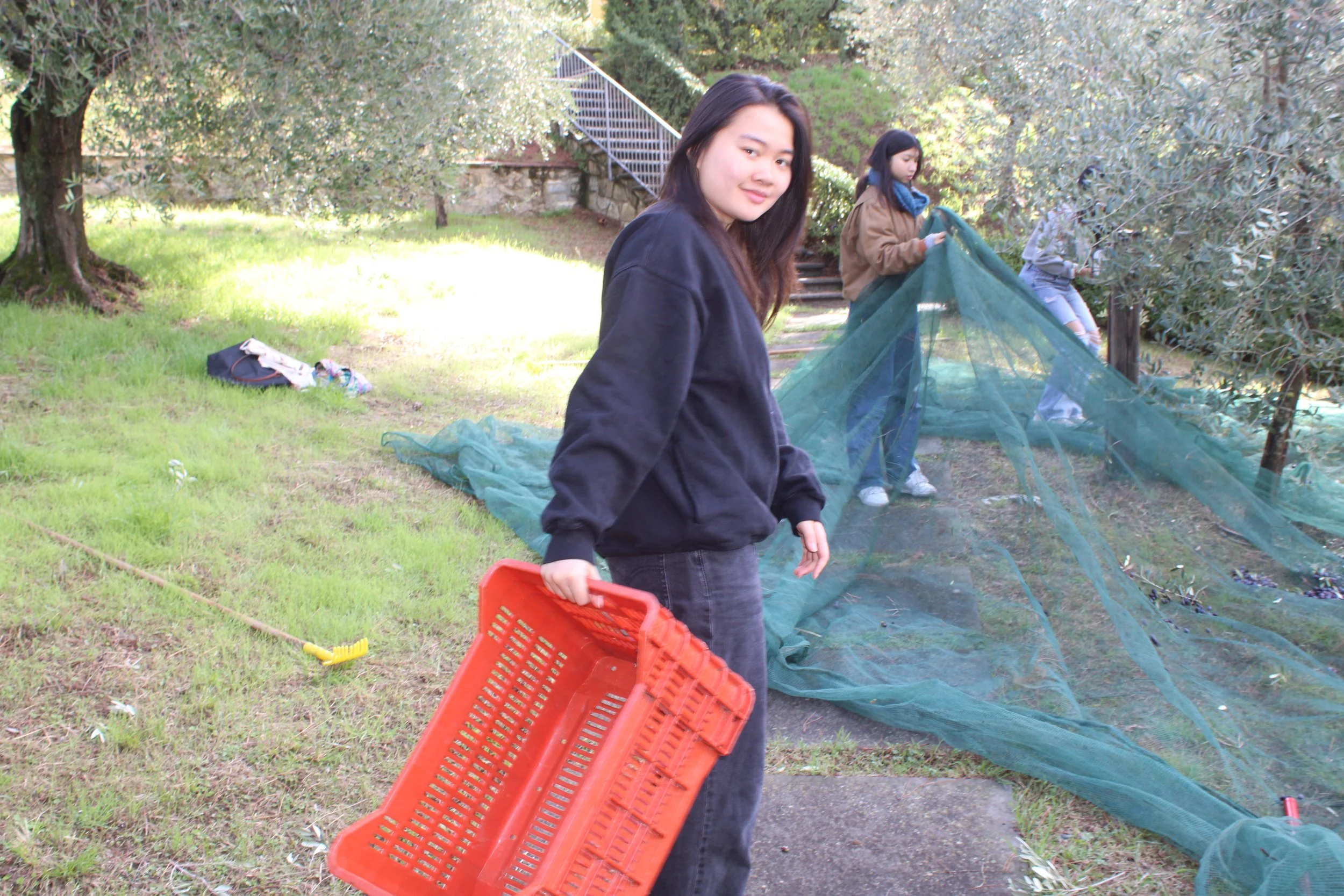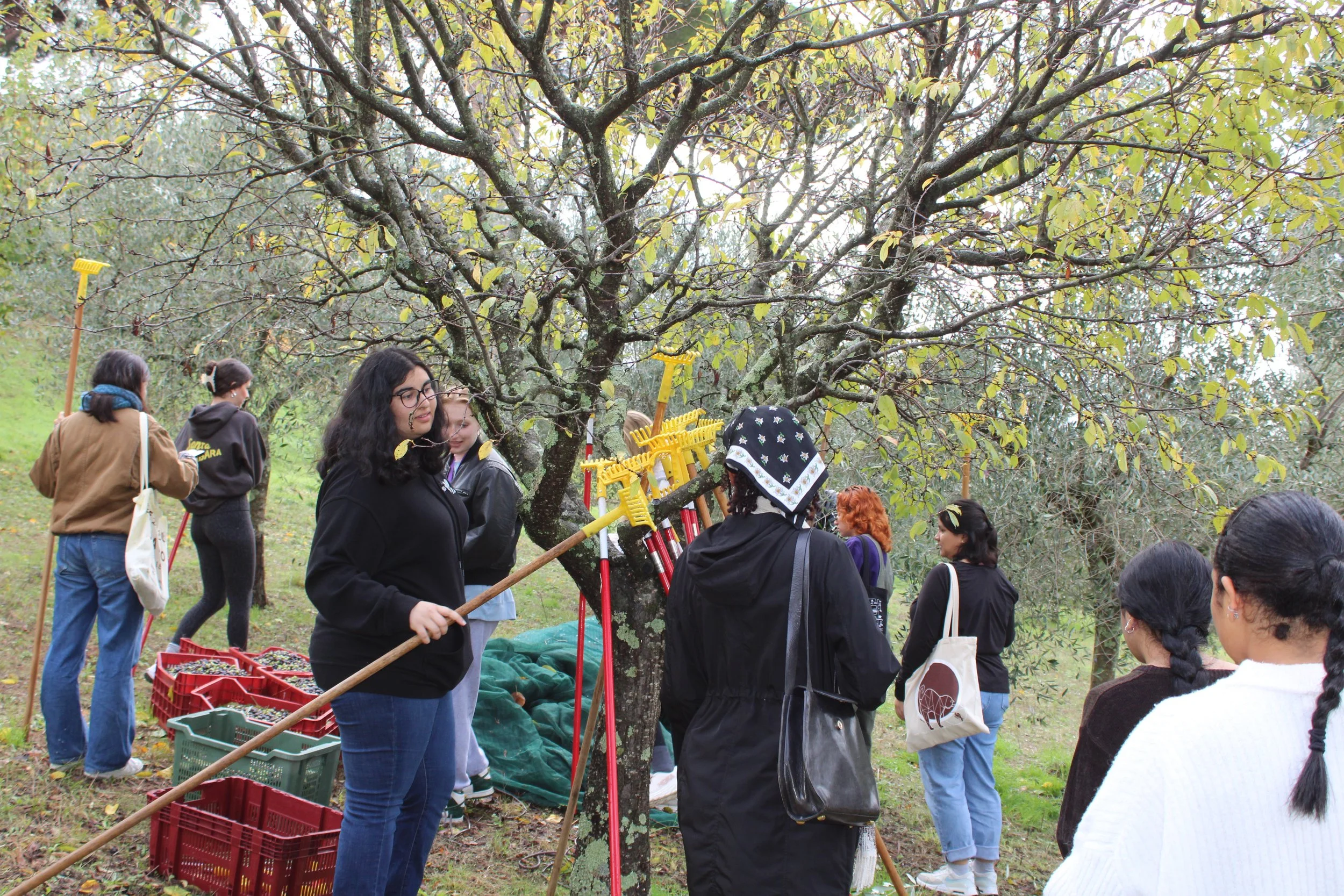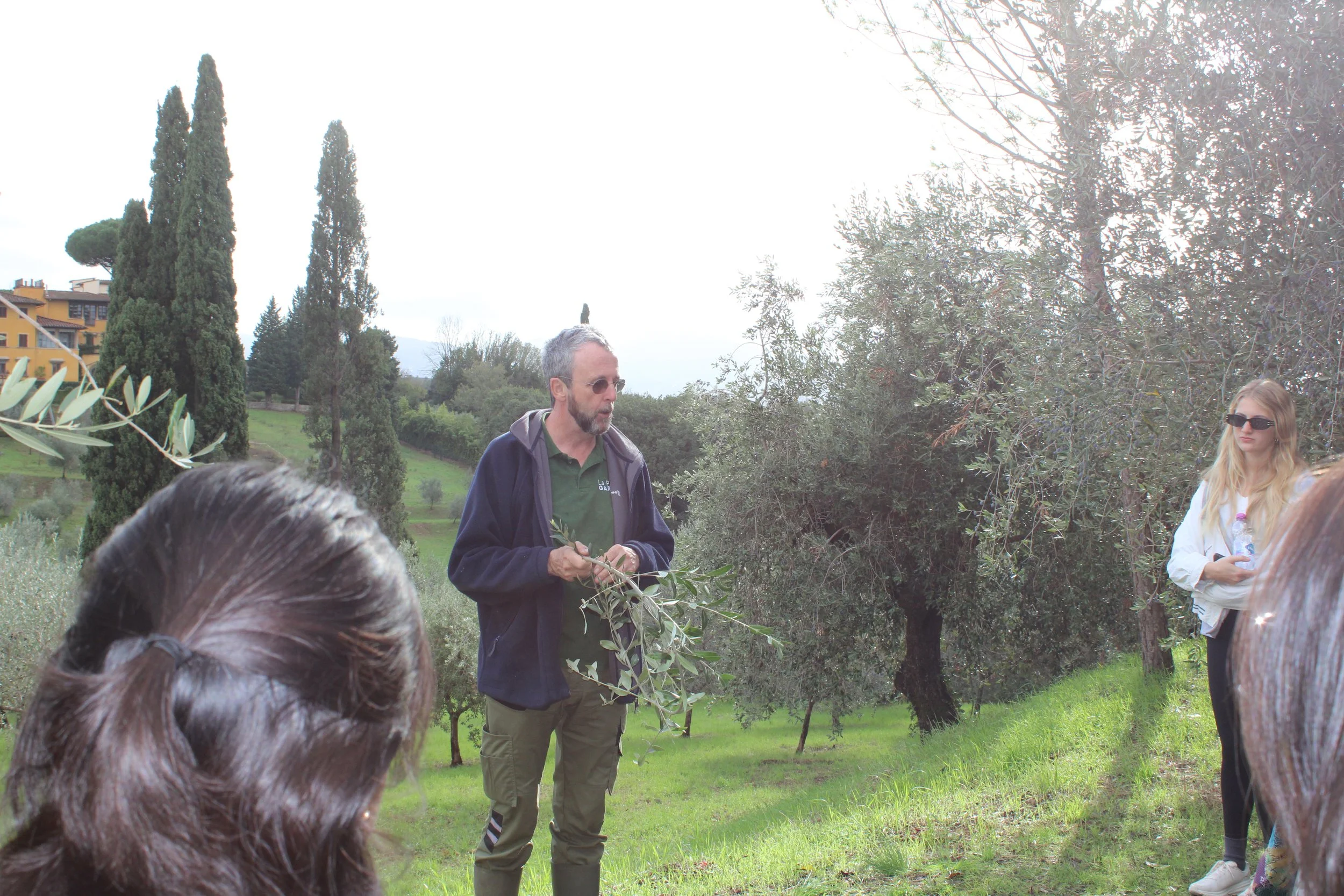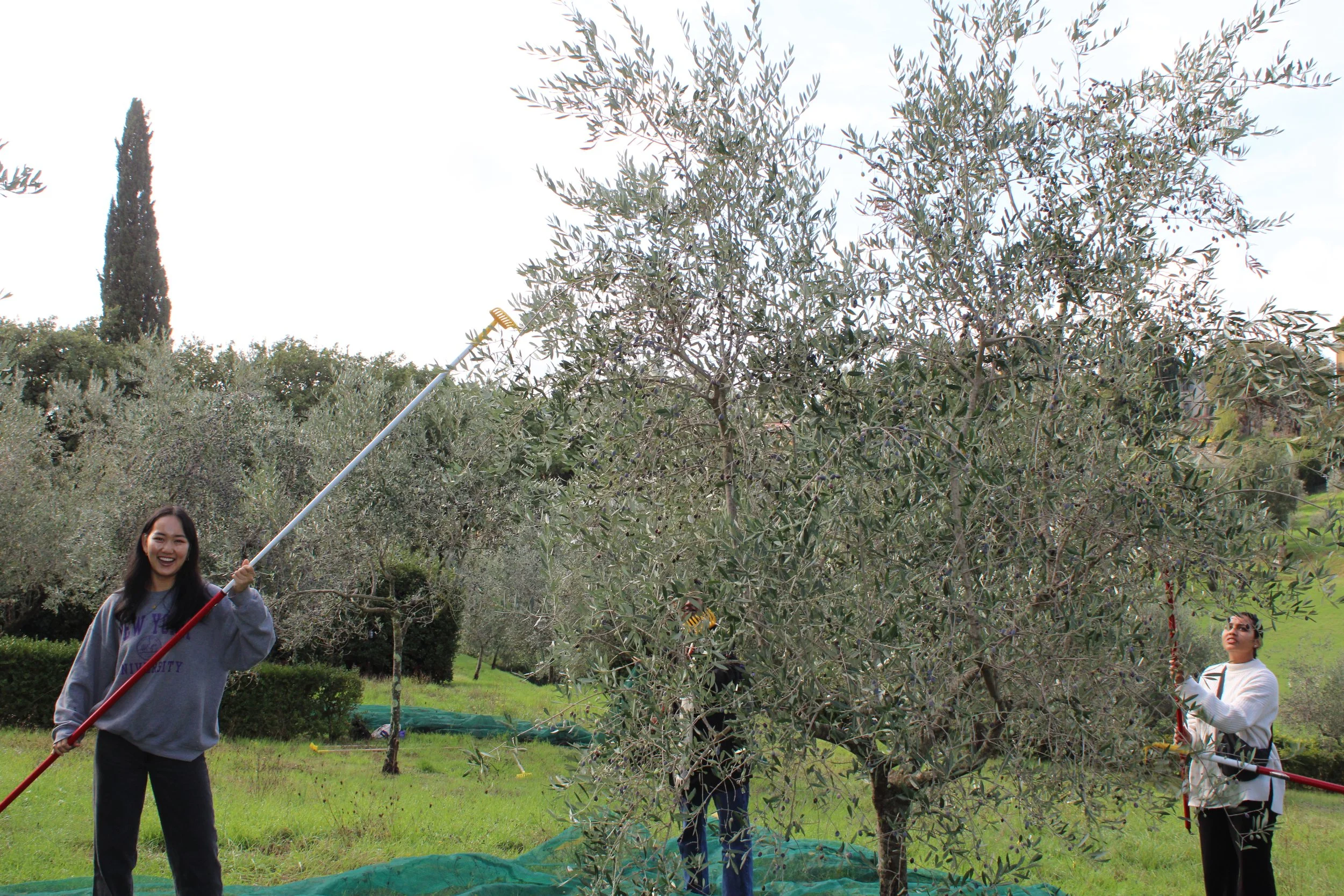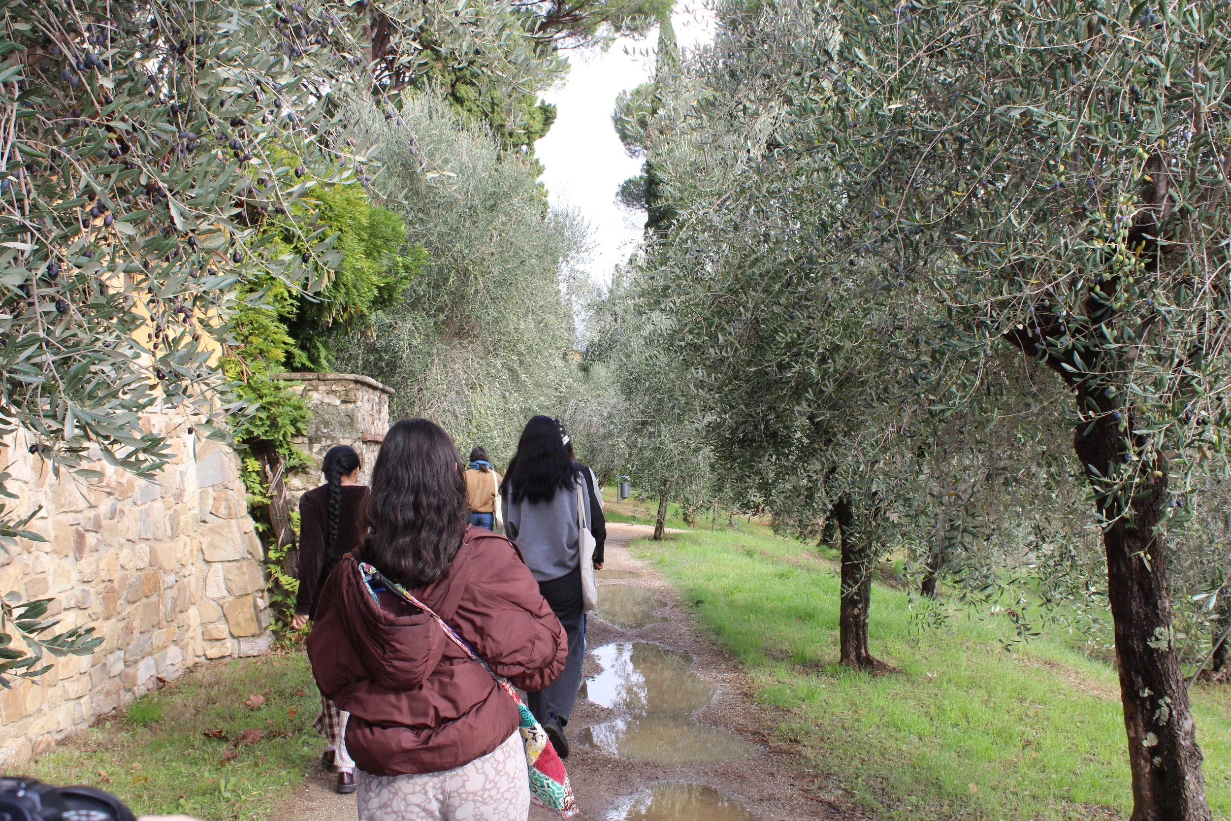 Each year, as part of a unique class experience, NYU Florence students actively participate in the harvesting of olives on campus grounds, turning theory into practice through hands-on engagement. Guided by faculty and local experts, students learn the intricacies of olive cultivation, harvesting techniques, and the traditional methods of pressing olives into oil. This immersive activity not only deepens their understanding of sustainable agriculture and food production but also connects them to the Tuscan landscape and its cultural heritage. The process culminates in the production of NYU’s very own olive oil, a product shaped by student collaboration, curiosity, and care.